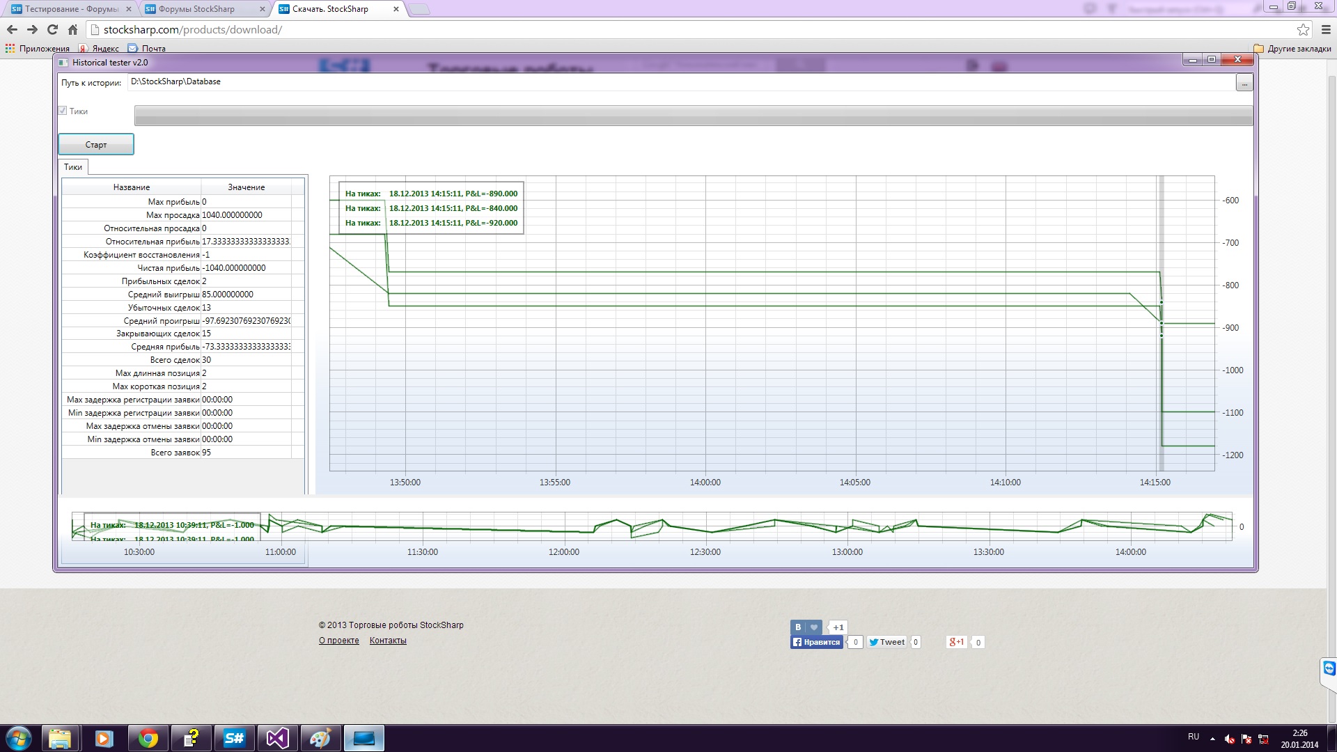 Собственно, хотелось бы понять причину рваных графиков - резких скачков на графике при отсутствии больших позиций по инструменту. Судите сами по скринам - RIH4_SampleSMA1.jpg, RIH4_MyStrategy1.jpg, RIH4_MyStrategy2.jpg, RIH4_MyStrategy4.jpg.