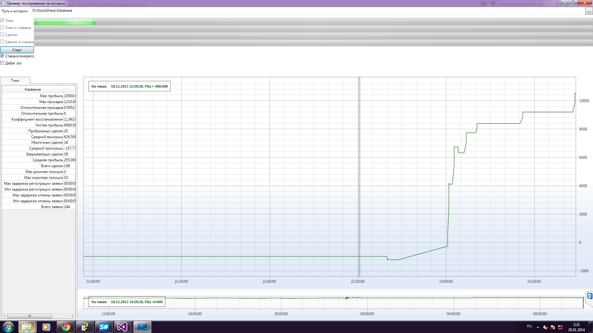 var trader = new HistoryEmulationConnector(new[] { security }, new[] { portfolio })