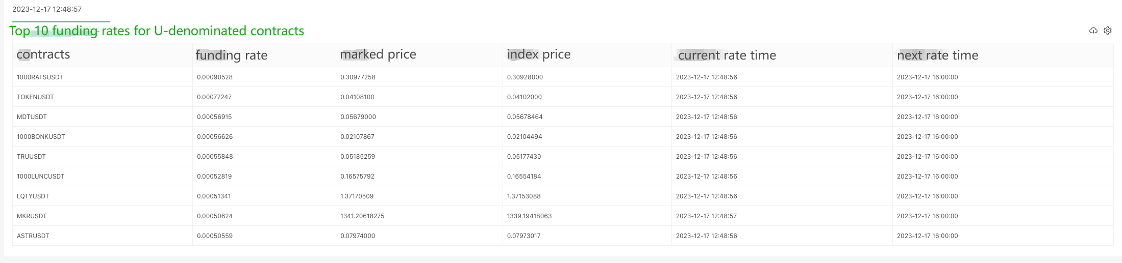 cols: ["contracts", "funding rate", "marked price", "index price", "current rate time", "next rate time"],