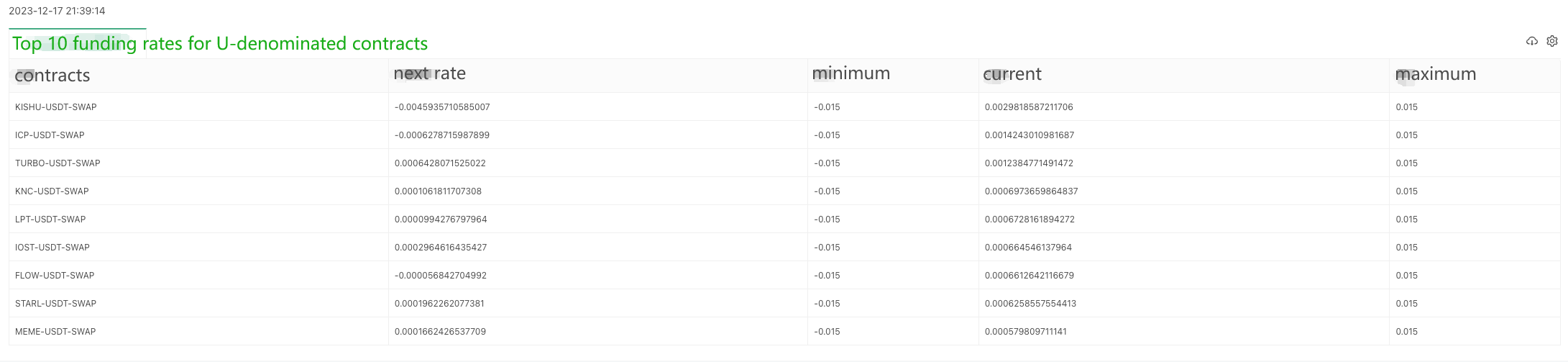 Since there are so many contracts, we're exporting the top 10 largest funding rates here.
