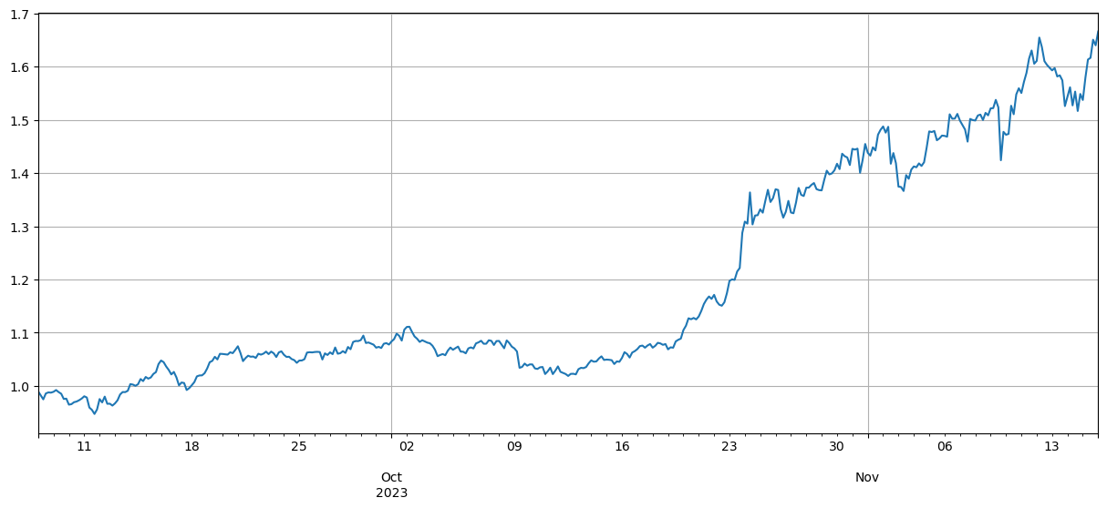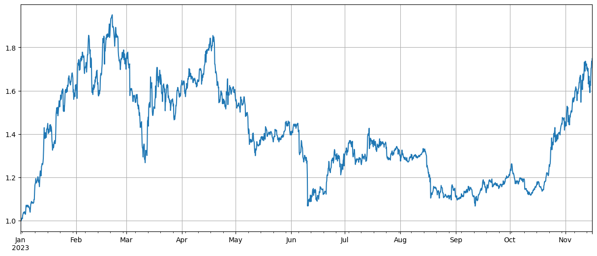 df_norm = df_close/df_close.fillna(method='bfill').iloc[0] #Normalization