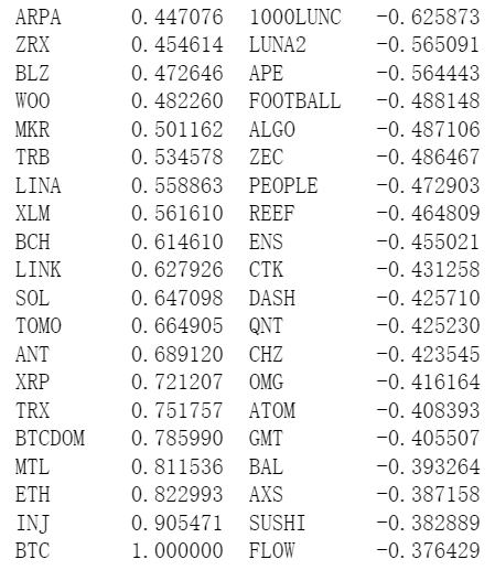 corr_symbols = (df_norm.iloc[:1500].corrwith(df_norm.BTC.iloc[:1500])-df_norm.iloc[:1500].corrwith(total_index[:1500])).sort_values().index