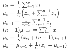 As can be seen from the above two formulas, this process allows us to update new averages and variances upon receiving each new data point