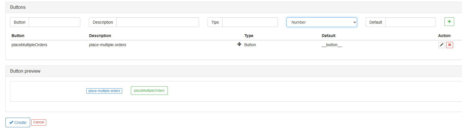 Add strategy interaction design on the strategy editing page by adding a button with the command: placeMultipleOrders.