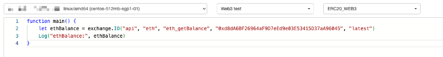 On FMZ, RPC method calls are also encapsulated, and these functions are encapsulated in the FMZ API function ```exchange.IO```. The calling method is ```exchange.IO("api", "eth", ...)```. The first parameter is fixed to ```"api"```, the second parameter is fixed to ```"eth"```, and other parameters depend on the specific RPC method being called.