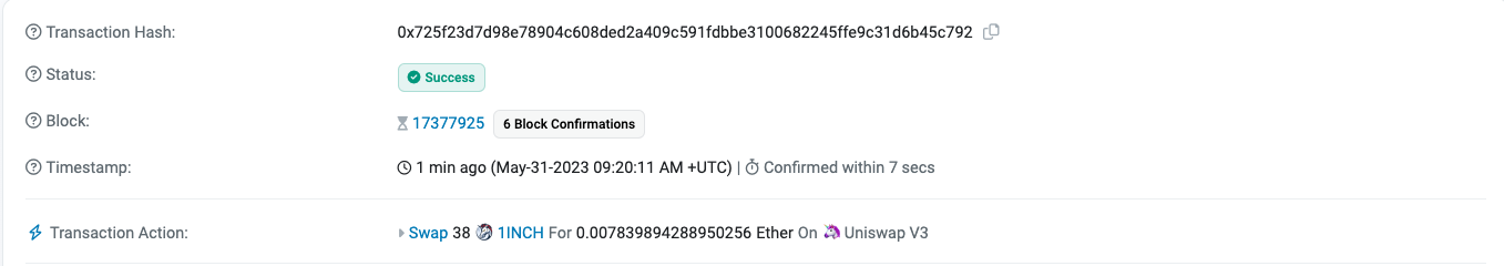// 1INCH -> WETH, tokenIn: 1INCH