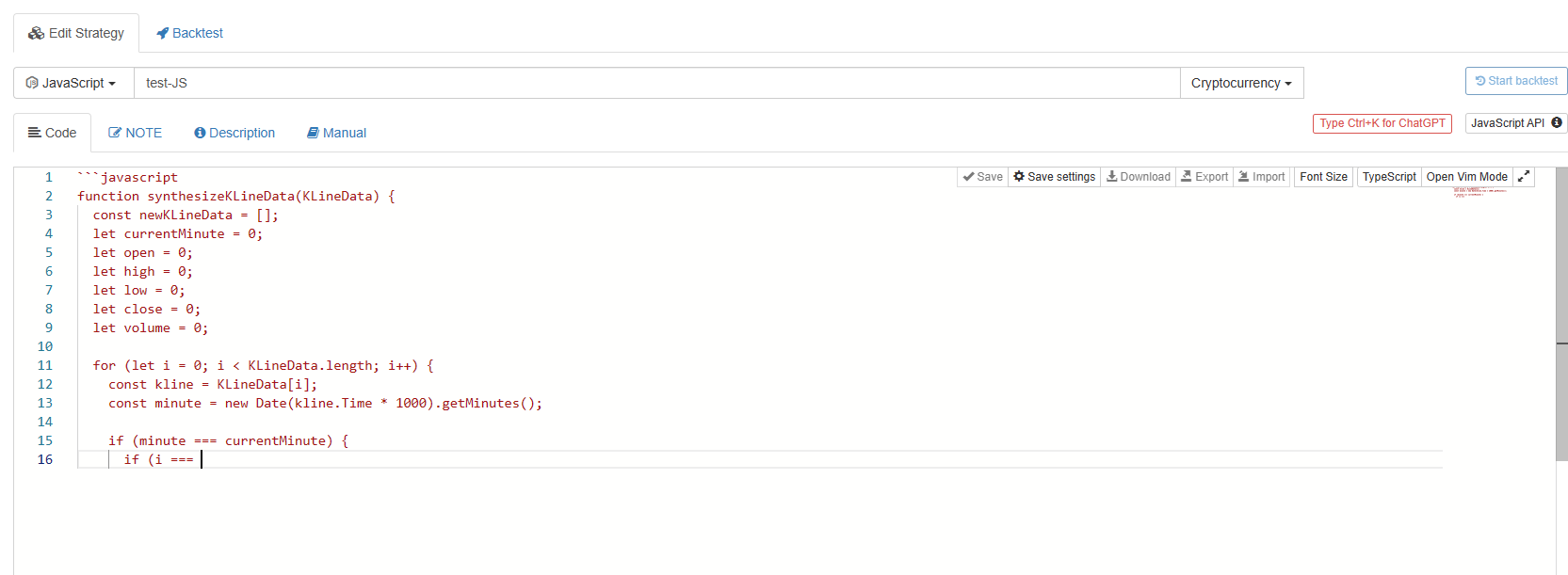 As a beginner, my programming ability is poor, and I really don't know how to write such an algorithm. In the past, I could only search for information and ask experts for help. Now, with ChatGPT, I can ask it for answers directly. Of course, as mentioned above, describing the requirement directly: "**Use one-minute K-line data to synthesize any period K-line data**". GPT is unlikely to give you a 100% usable answer, so you still need to try your best to describe the problem thoroughly. Taking the requirement as an example, I kept adjusting my questions and asked many times before getting a usable answer that met my needs.