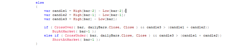 Утверждение первоеИстинность пробоя можно определить по объему, то есть, если пробой прошел на больших объемах нежели предыдущие бары, нужно считать его истинным. Тут конечно можно наколдовать массу кода. К примеру взять скользящую построенную на объёме или какой-либо другой индикатор. Но мы пойдём самым лёгким путём и просто будем сравнивать текущий объём с предыдущим, и если текущий объём меньше предыдущего то мы не входим в сделку считая такой сетап некорректным.